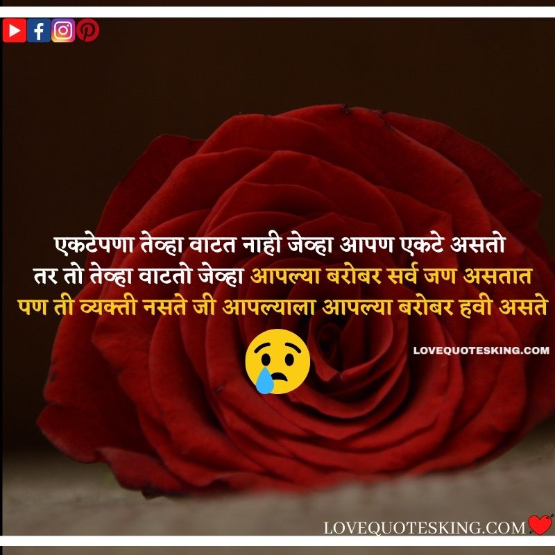एकटेपणा तेव्हा वाटत नाही जेव्हा आपण एकटे असतो तर तो तेव्हा वाटतो जेव्हा आपल्या बरोबर सर्व जण असतात पण ती व्यक्ती नसते जी आपल्याला आपल्या बरोबर हवी असते