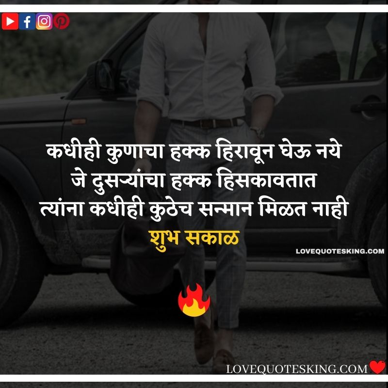 рдХрдзреАрд╣реА рдХреБрдгрд╛рдЪрд╛ рд╣рдХреНрдХ рд╣рд┐рд░рд╛рд╡реВрди рдШреЗрдК рдирдпреЗ. рдЬреЗ рджреБрд╕рд▒реНрдпрд╛рдВрдЪрд╛ рд╣рдХреНрдХ рд╣рд┐рд╕рдХрд╛рд╡рддрд╛рдд, рддреНрдпрд╛рдВрдирд╛ рдХрдзреАрд╣реА рдХреБрдареЗрдЪ рд╕рдиреНрдорд╛рди рдорд┐рд│рдд рдирд╛рд╣реА.рд╢реБрдн рд╕рдХрд╛рд│