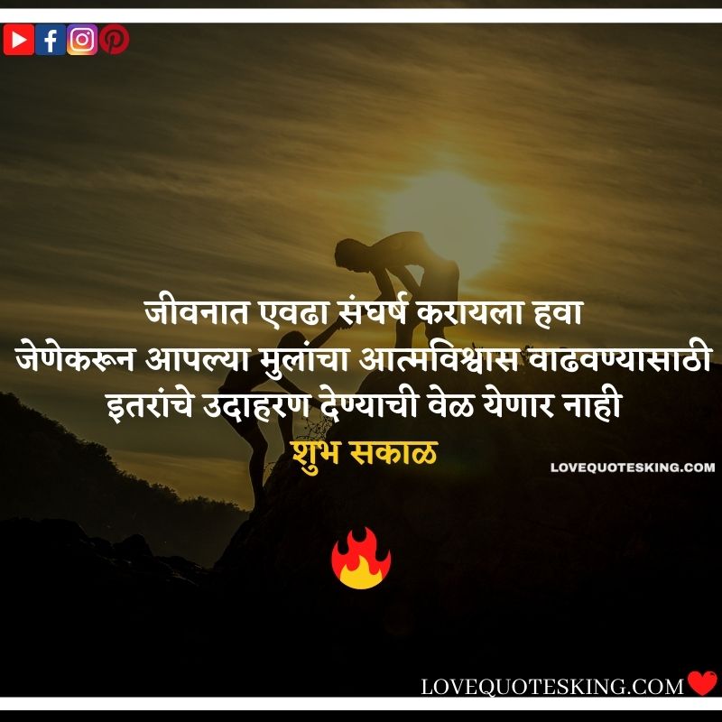 рдЬреАрд╡рдирд╛рдд рдПрд╡рдврд╛ рд╕рдВрдШрд░реНрд╖ рдХрд░рд╛рдпрд▓рд╛ рд╣рд╡рд╛, рдЬреЗрдгреЗрдХрд░реВрди рдЖрдкрд▓реНрдпрд╛ рдореБрд▓рд╛рдВрдЪрд╛ рдЖрддреНрдорд╡рд┐рд╢реНрд╡рд╛рд╕ рд╡рд╛рдврд╡рдгреНрдпрд╛рд╕рд╛рдареА рдЗрддрд░рд╛рдВрдЪреЗ рдЙрджрд╛рд╣рд░рдг рджреЗрдгреНрдпрд╛рдЪреА рд╡реЗрд│ рдпреЗрдгрд╛рд░ рдирд╛рд╣реА.рд╢реБрдн рд╕рдХрд╛рд│