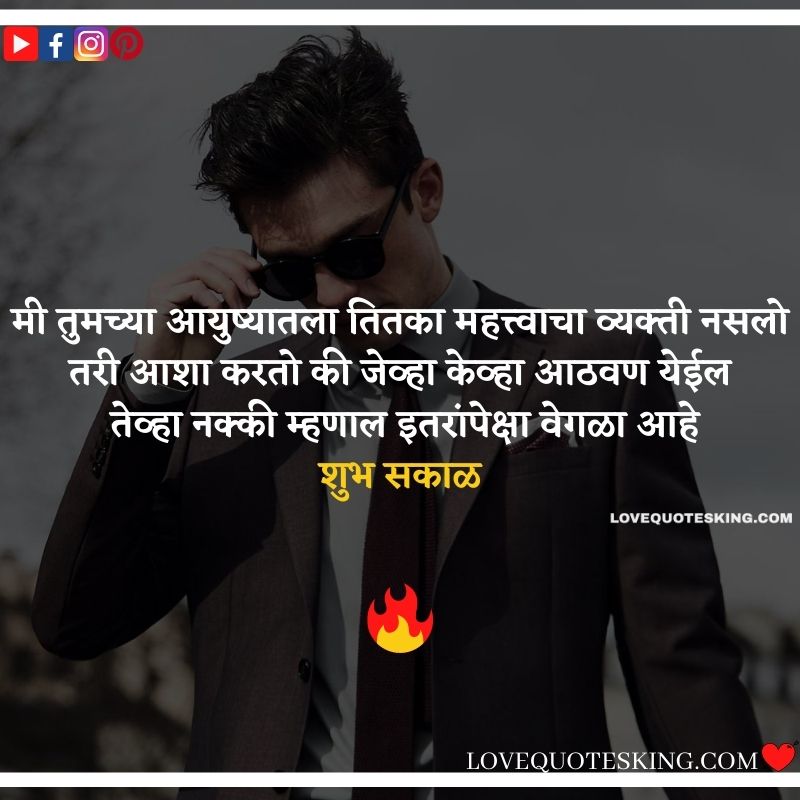 рдореА рддреБрдордЪреНрдпрд╛ рдЖрдпреБрд╖реНрдпрд╛рддрд▓рд╛ рддрд┐рддрдХрд╛ рдорд╣рддреНрддреНрд╡рд╛рдЪрд╛ рд╡реНрдпрдХреНрддреА рдирд╕рд▓реЛ рддрд░реА рдЖрд╢рд╛ рдХрд░рддреЛ рдХреА рдЬреЗрд╡реНрд╣рд╛ рдХреЗрд╡реНрд╣рд╛ рдЖрдард╡рдг рдпреЗрдИрд▓ рддреЗрд╡реНрд╣рд╛ рдирдХреНрдХреА рдореНрд╣рдгрд╛рд▓ рдЗрддрд░рд╛рдВрдкреЗрдХреНрд╖рд╛ рд╡реЗрдЧрд│рд╛ рдЖрд╣реЗ.рд╢реБрдн рд╕рдХрд╛рд│