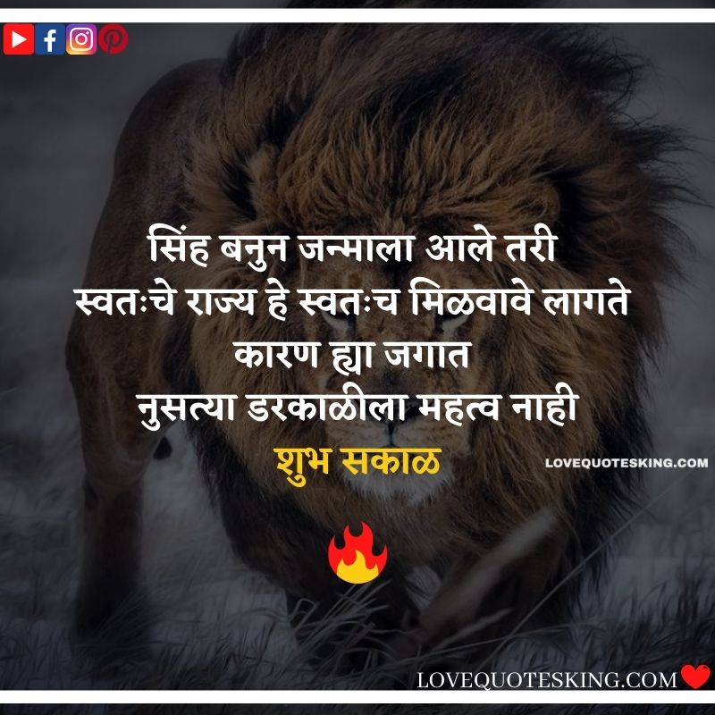 рд╕рд┐рдВрд╣ рдмрдиреБрди рдЬрдиреНрдорд╛рд▓рд╛ рдЖрд▓реЗ рддрд░реА рд╕реНрд╡рддрдГрдЪреЗ рд░рд╛рдЬреНрдп рд╣реЗ рд╕реНрд╡рддрдГрдЪ рдорд┐рд│рд╡рд╛рд╡реЗ рд▓рд╛рдЧрддреЗ рдХрд╛рд░рдг рд╣реНрдпрд╛ рдЬрдЧрд╛рдд рдиреБрд╕рддреНрдпрд╛ рдбрд░рдХрд╛рд│реАрд▓рд╛ рдорд╣рддреНрд╡ рдирд╛рд╣реА.рд╢реБрдн рд╕рдХрд╛рд│