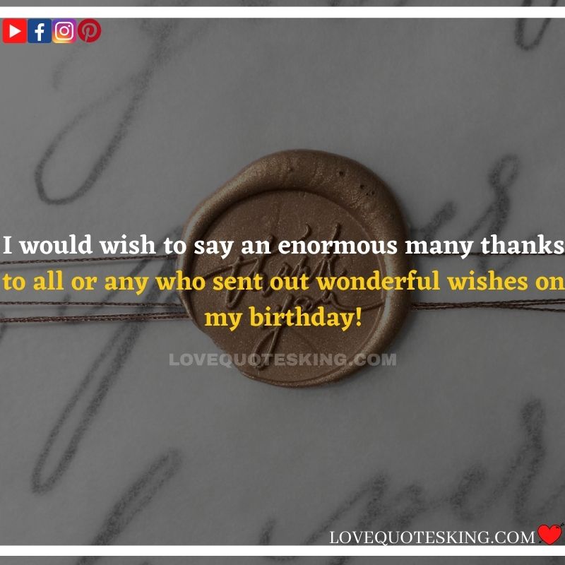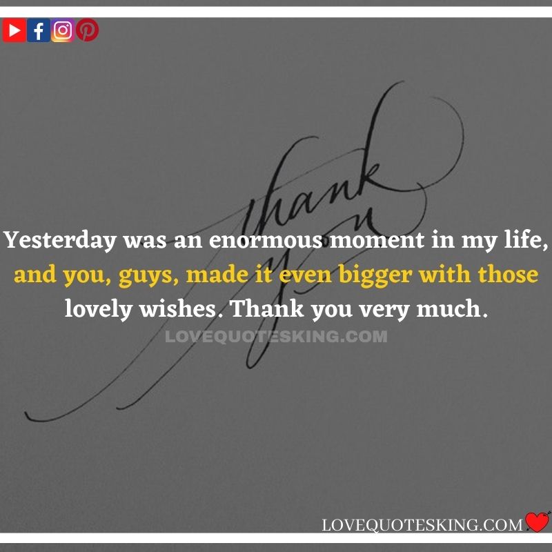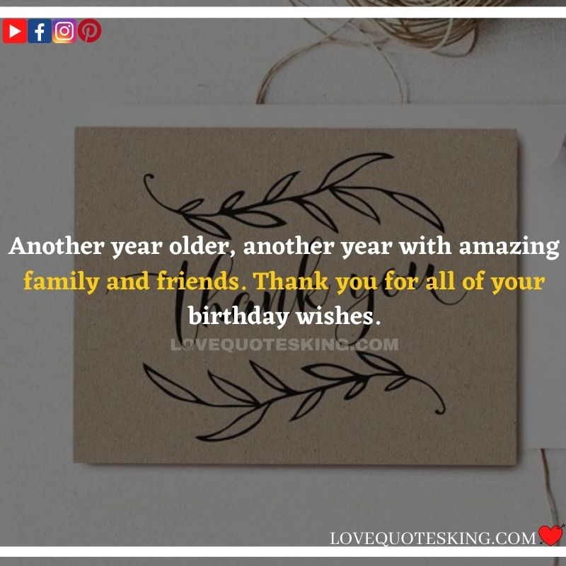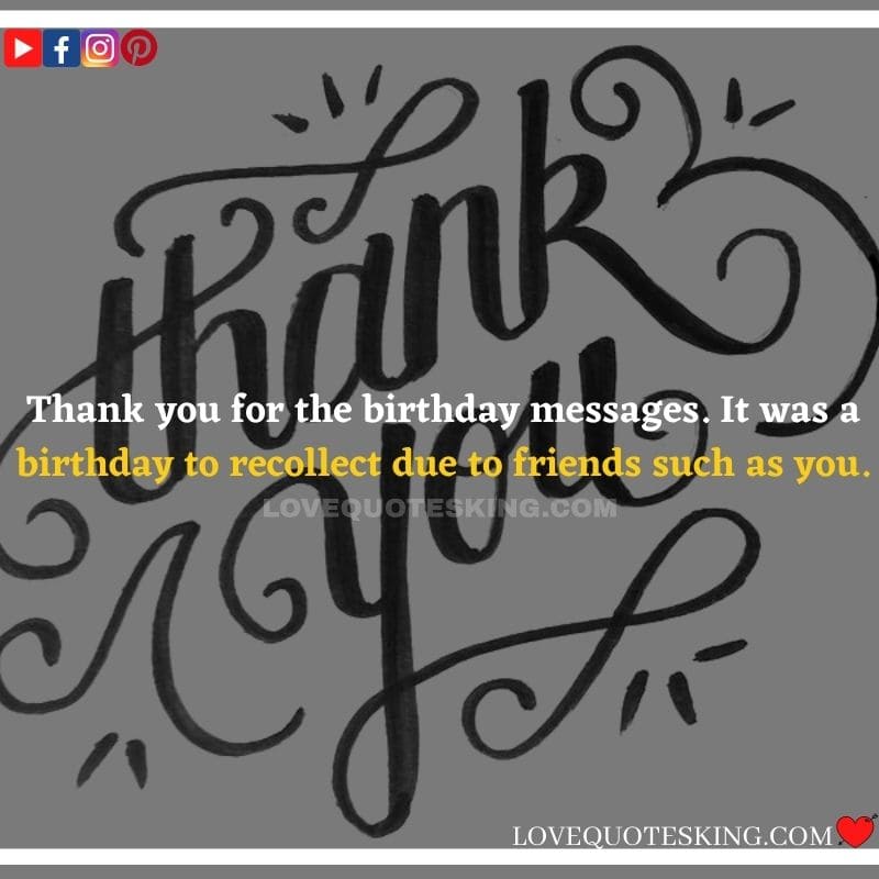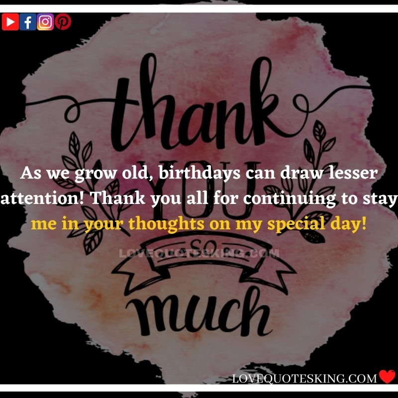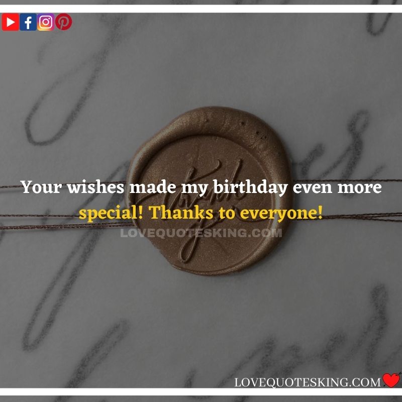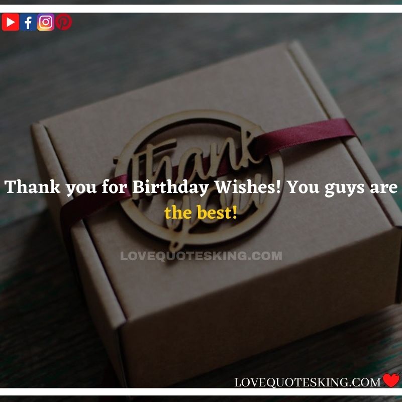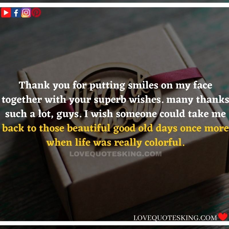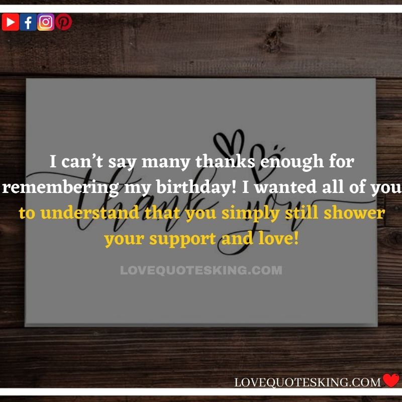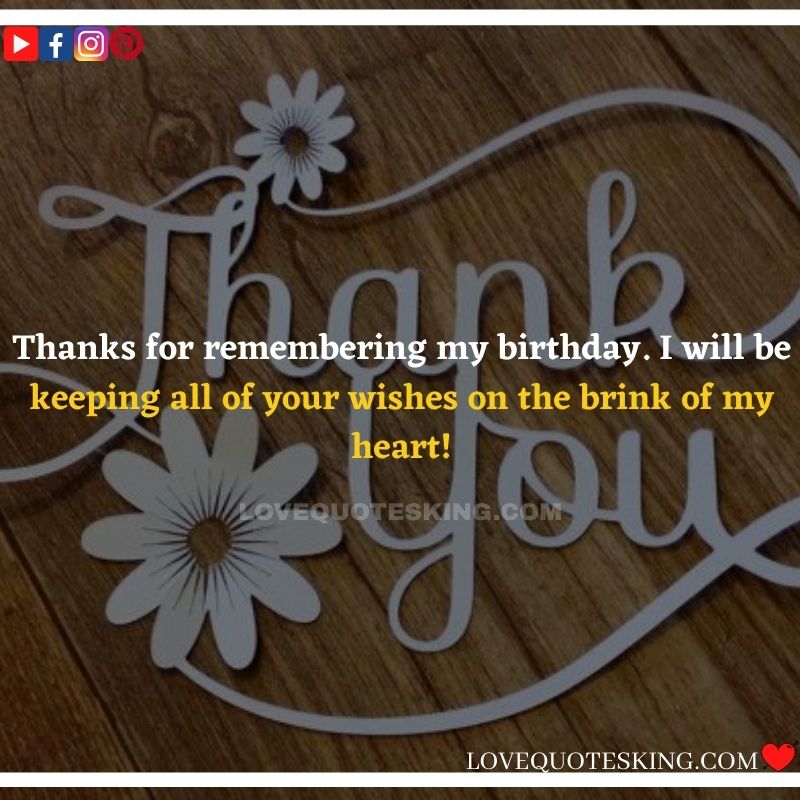 Best ②⓪⓪ Thank you quotes for birthday wishes When your birthday comes around, there’s almost nothing as fun as getting wishes, messages, and texts from friends everywhere on the planet. Thanks to Facebook, Twitter, and texting, we hear from almost everybody we all know and care about! It makes birthdays special and exciting Thank You Messages for Birthdays. We might hear from a long-lost friend!