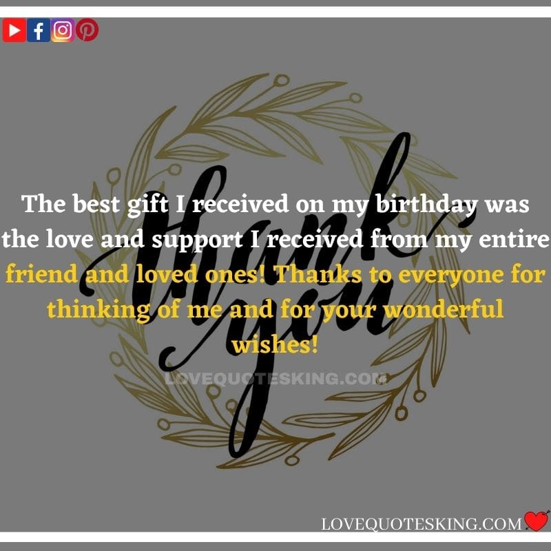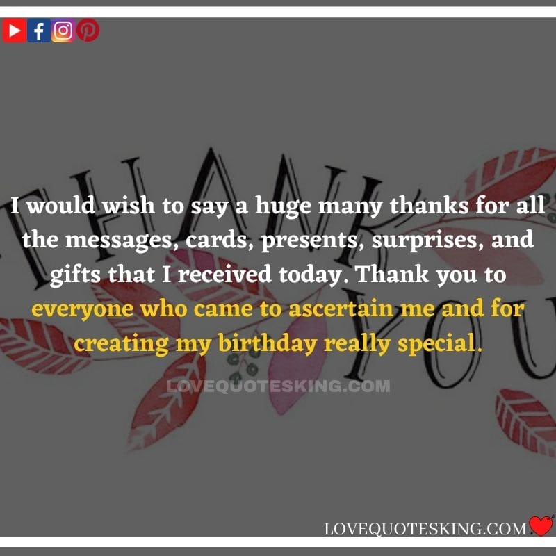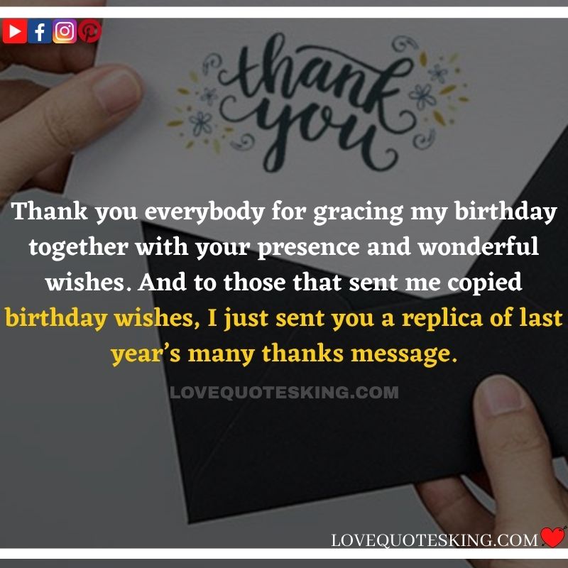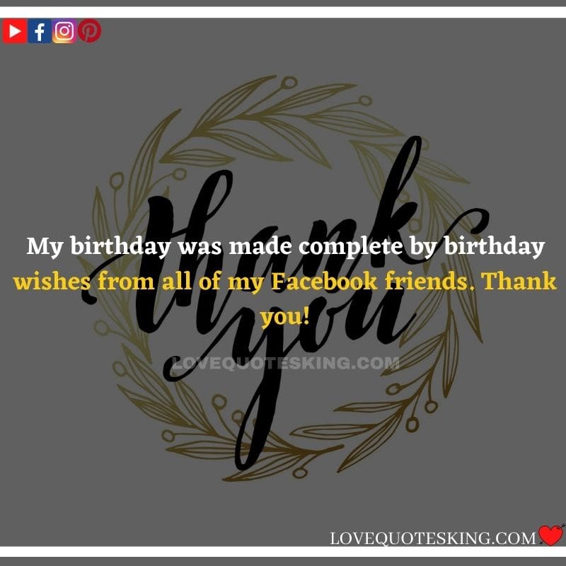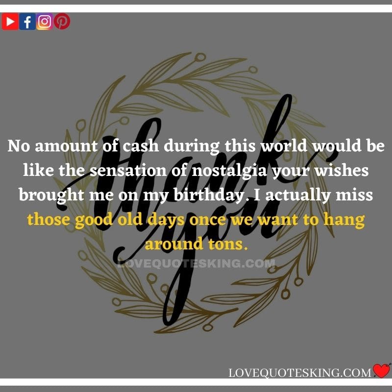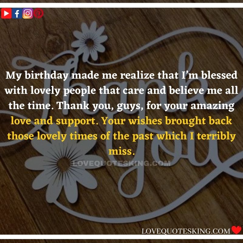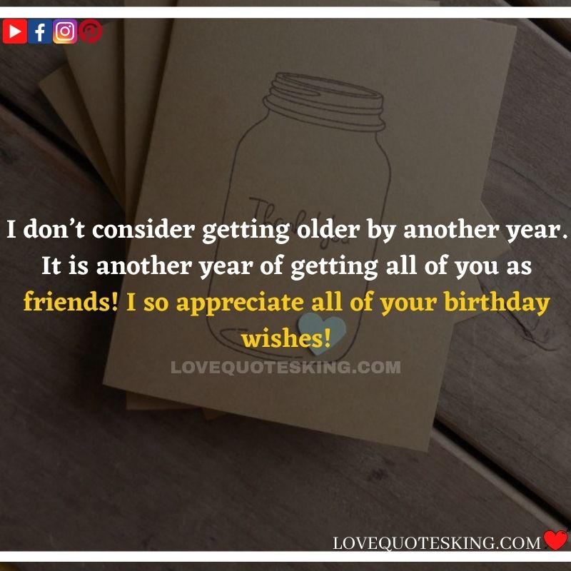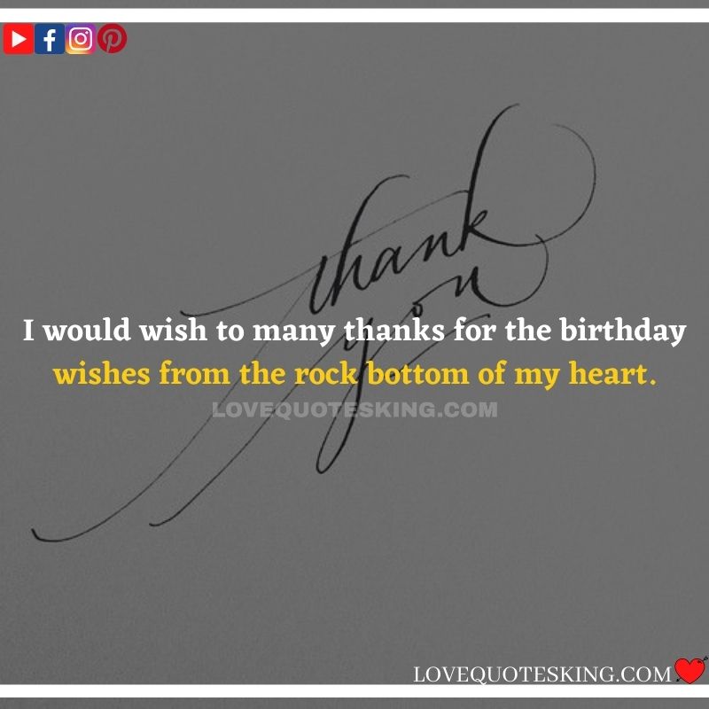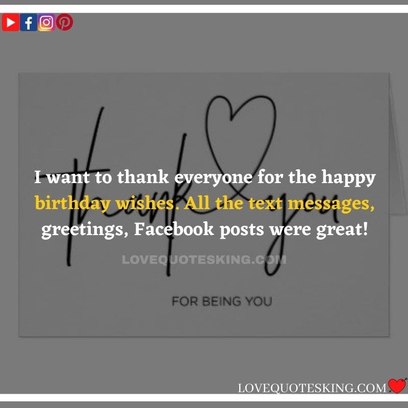 Best ②⓪⓪ Thank you quotes for birthday wishes When your birthday comes around, there’s almost nothing as fun as getting wishes, messages, and texts from friends everywhere on the planet. Thanks to Facebook, Twitter, and texting, we hear from almost everybody we all know and care about! It makes birthdays special and exciting Thank You Messages for Birthdays. We might hear from a long-lost friend!