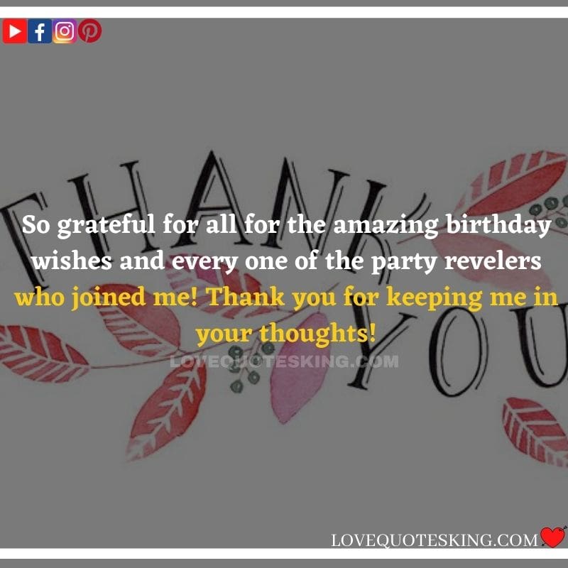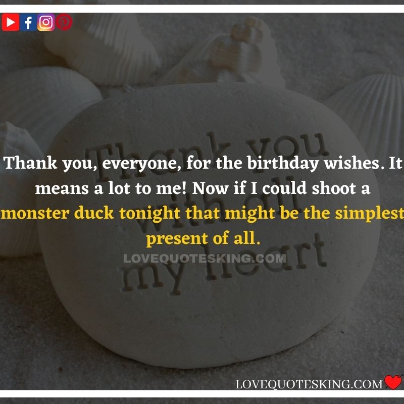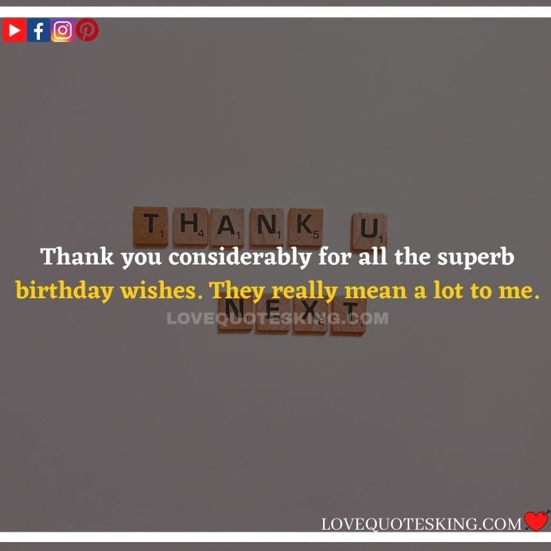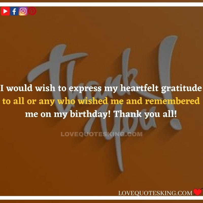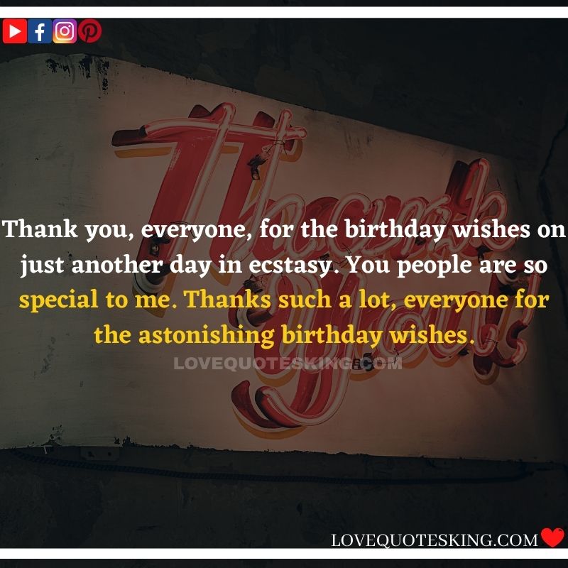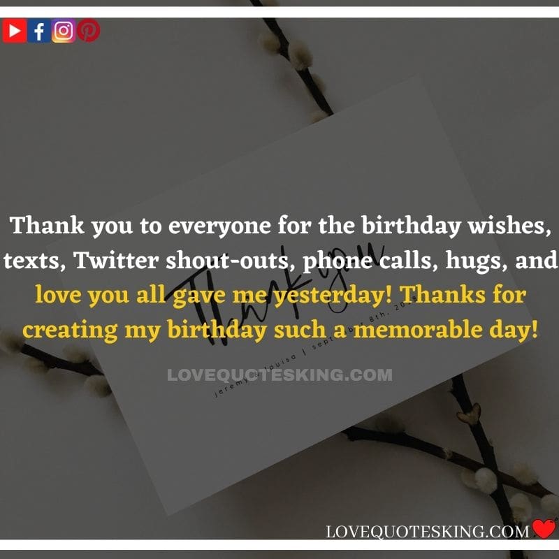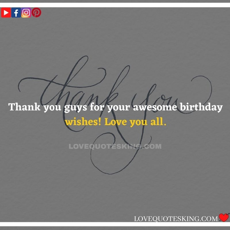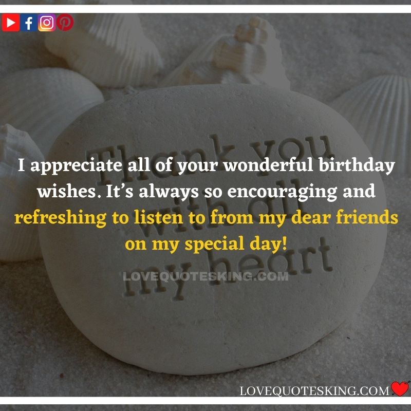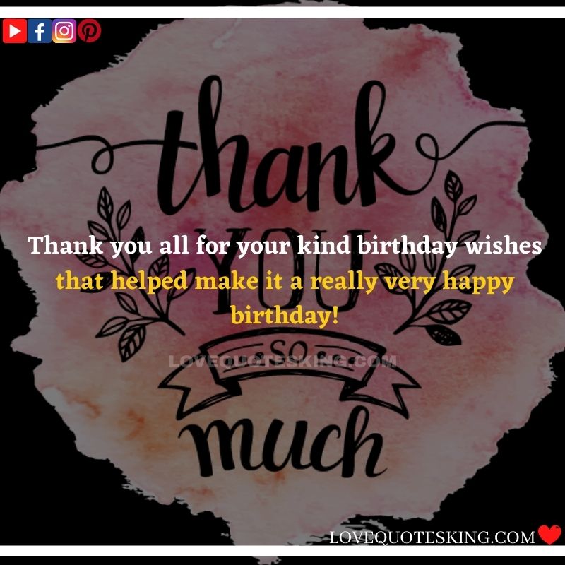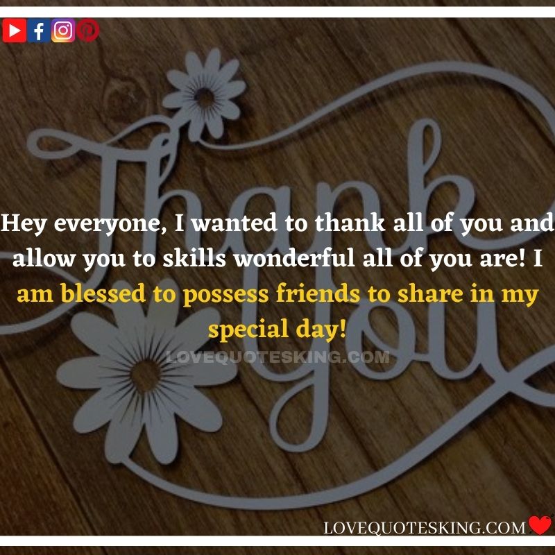 Best ②⓪⓪ Thank you quotes for birthday wishes When your birthday comes around, there’s almost nothing as fun as getting wishes, messages, and texts from friends everywhere on the planet. Thanks to Facebook, Twitter, and texting, we hear from almost everybody we all know and care about! It makes birthdays special and exciting Thank You Messages for Birthdays. We might hear from a long-lost friend!