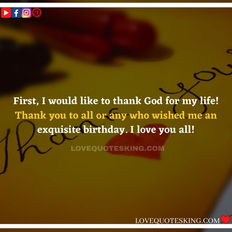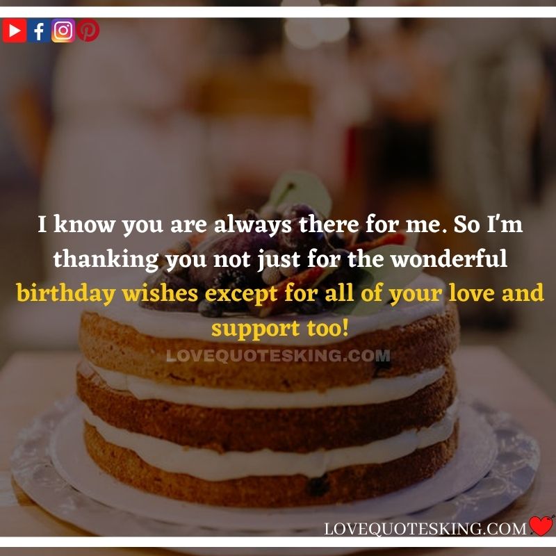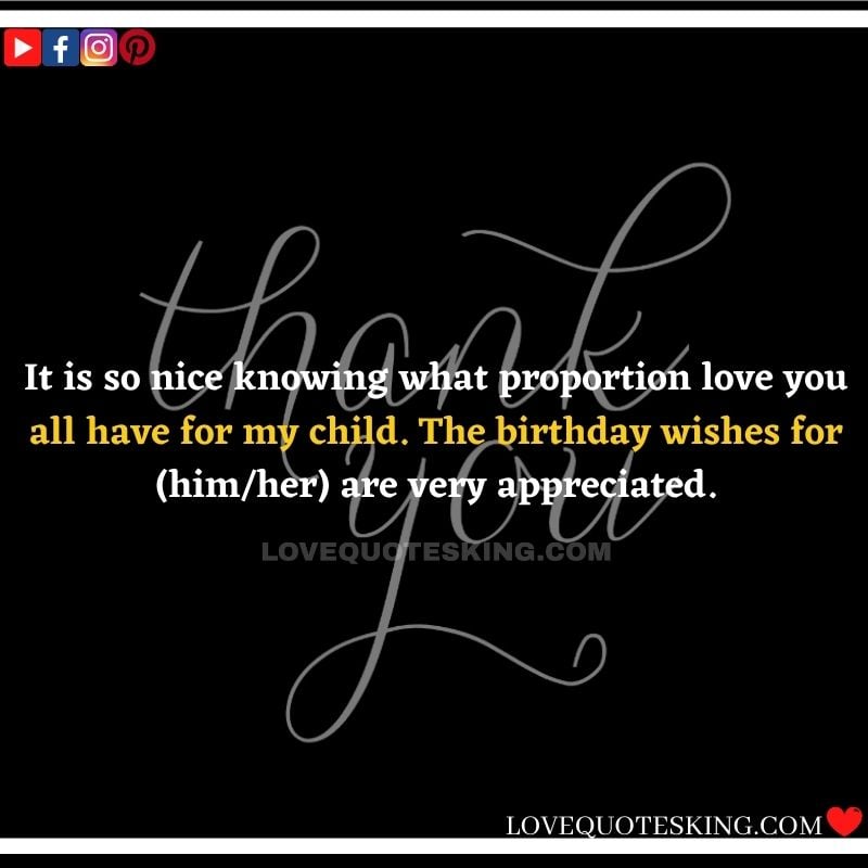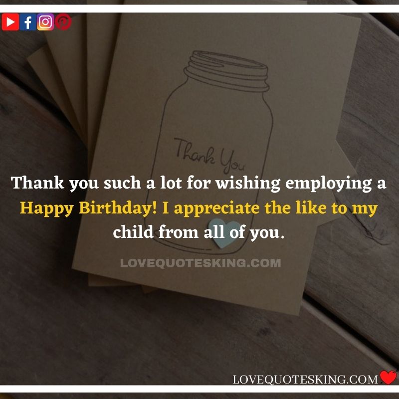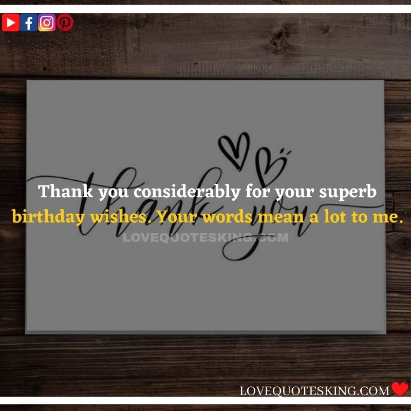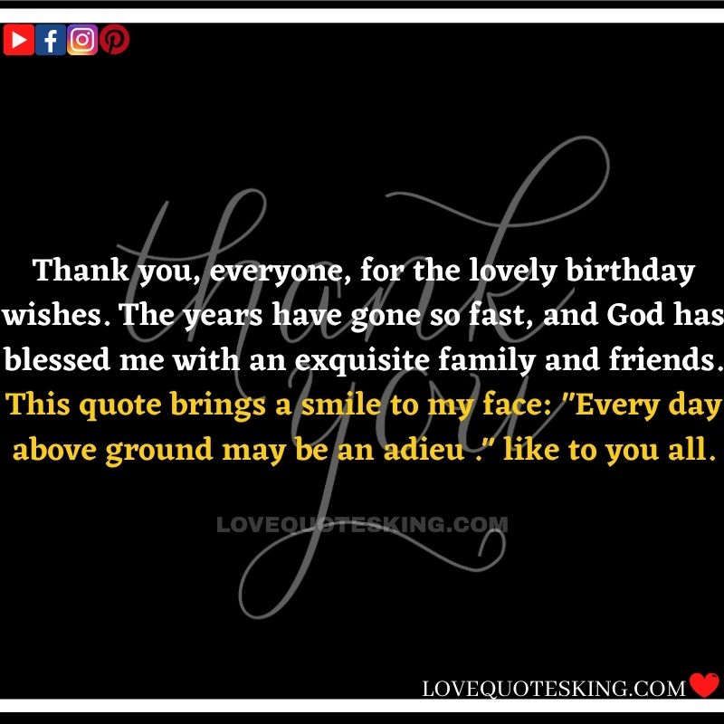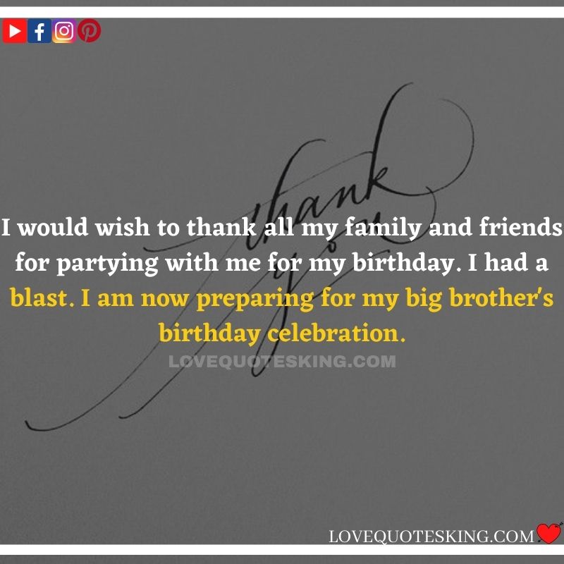 My lovely family always makes the foremost effort to share the absolute best birthday wishes, i would like to mention an enormous many thanks to you for the birthday wish you so kindly sent me. My day was an excellent one because of greatest family an individual could wish for. many thanks so much! Can’t wait to ascertain you all again soon!