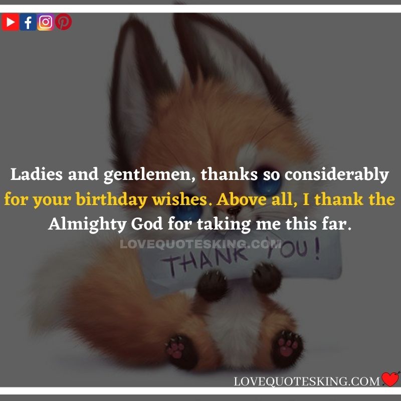 Ladies and gentlemen, thanks so considerably for your birthday wishes. Above all, I thank the Almighty God for taking me this far.