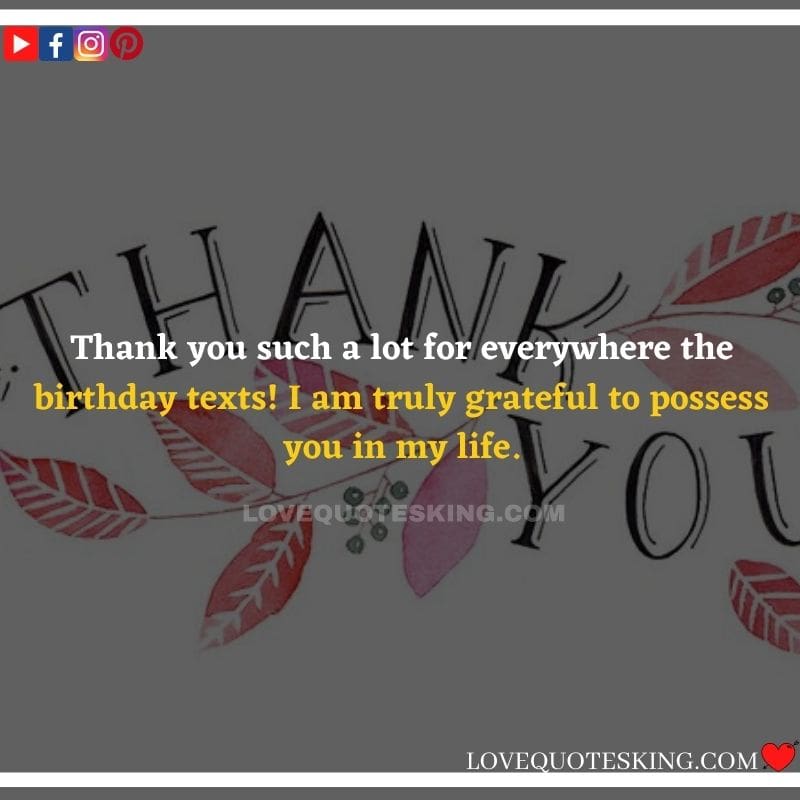 Thank you such a lot for everywhere the birthday texts! I am truly grateful to possess you in my life.