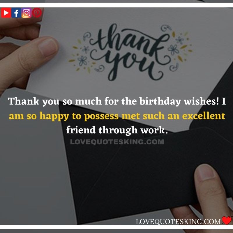 Thank you so much for the birthday wishes! I am so happy to possess met such an excellent friend through work.