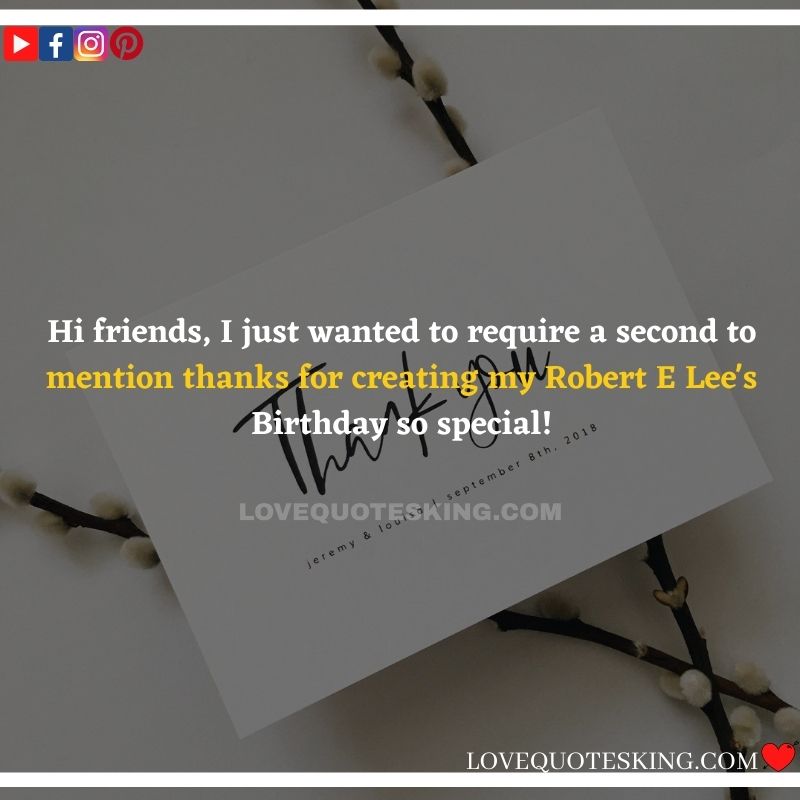 Sending a gargantuan many thanks from rock bottom of my heart to all or any the stunning people that made my birthday one among the foremost enjoyable occasions of my life. many thanks for bringing back the wonderful memories of the past. I miss those days once we wont to spend hours together having the time of our lives.