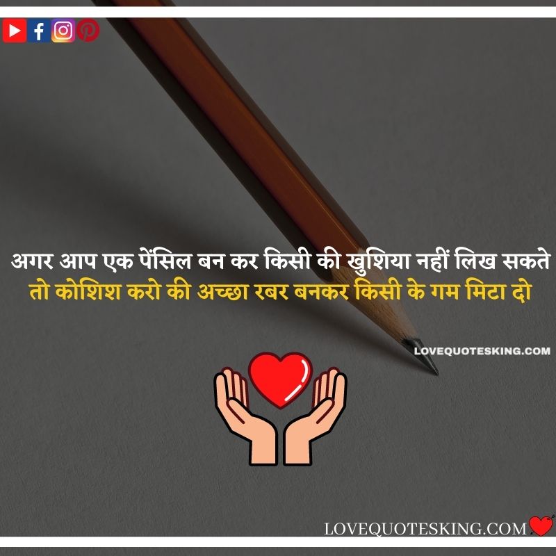 अगर आप एक पेंसिल बन कर किसी की खुशिया नहीं लिख सकते तो कोशिश करो की अच्छा रबर बनकर किसी के गम मिटा दो