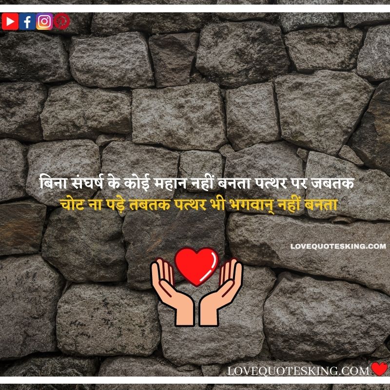 बिना संघर्ष के कोई महान नहीं बनता पत्थर पर जबतक चोट ना पड़े तबतक पत्थर भी भगवान् नहीं बनता