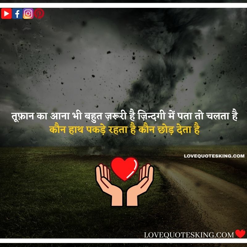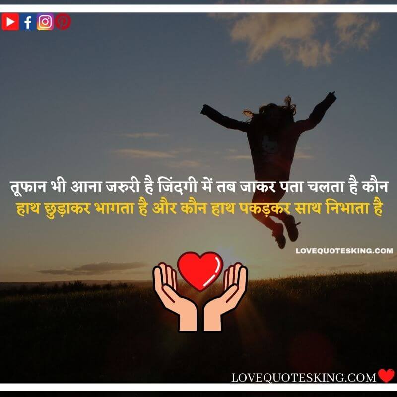 तूफान भी आना जरुरी है जिंदगी में तब जाकर पता चलता है कौन हाथ छुड़ाकर भागता है और कौन हाथ पकड़कर साथ निभाता है