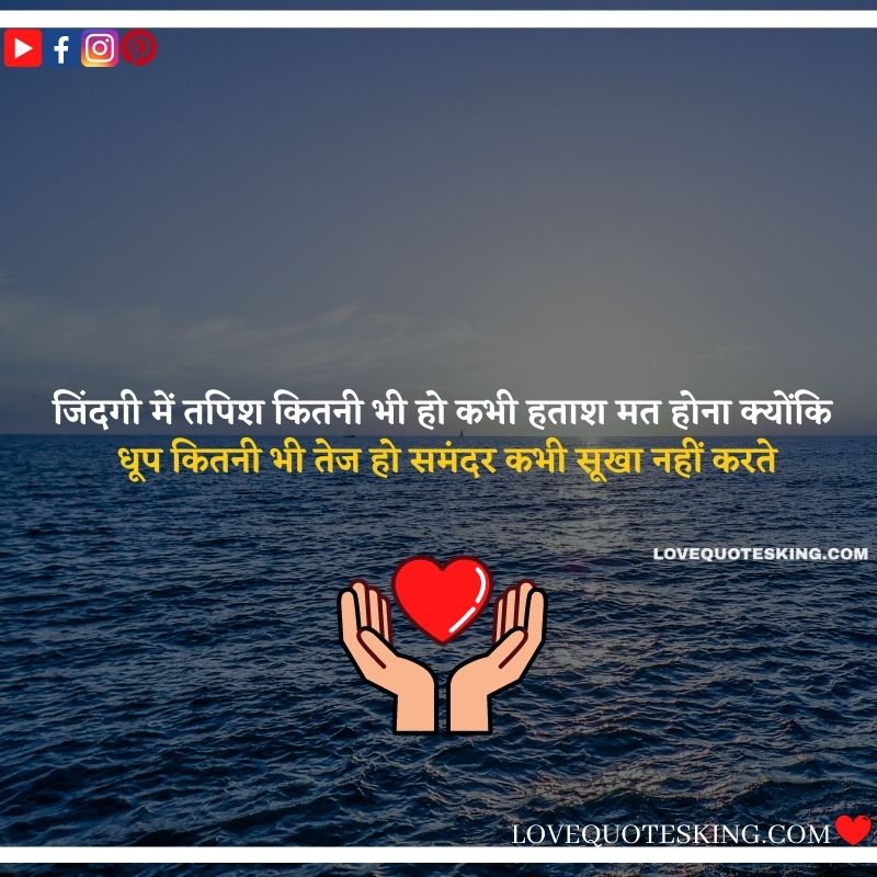 जिंदगी में तपिश कितनी भी हो कभी हताश मत होना क्योंकि धूप कितनी भी तेज हो समंदर कभी सूखा नहीं करते