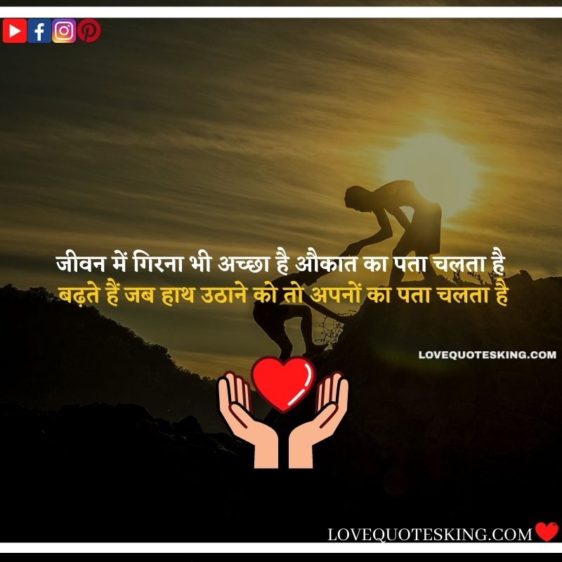 जीवन में गिरना भी अच्छा है औकात का पता चलता है बढ़ते हैं जब हाथ उठाने को तो अपनों का पता चलता है