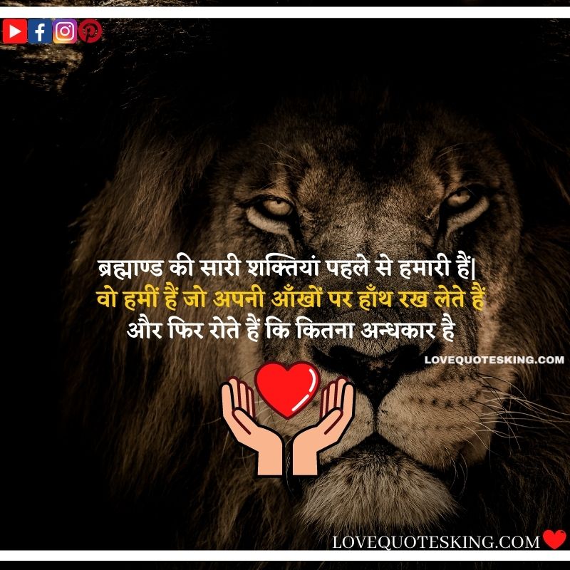 ब्रह्माण्ड की सारी शक्तियां पहले से हमारी हैं| वो हमीं हैं जो अपनी आँखों पर हाँथ रख लेते हैं और फिर रोते हैं कि कितना अन्धकार है