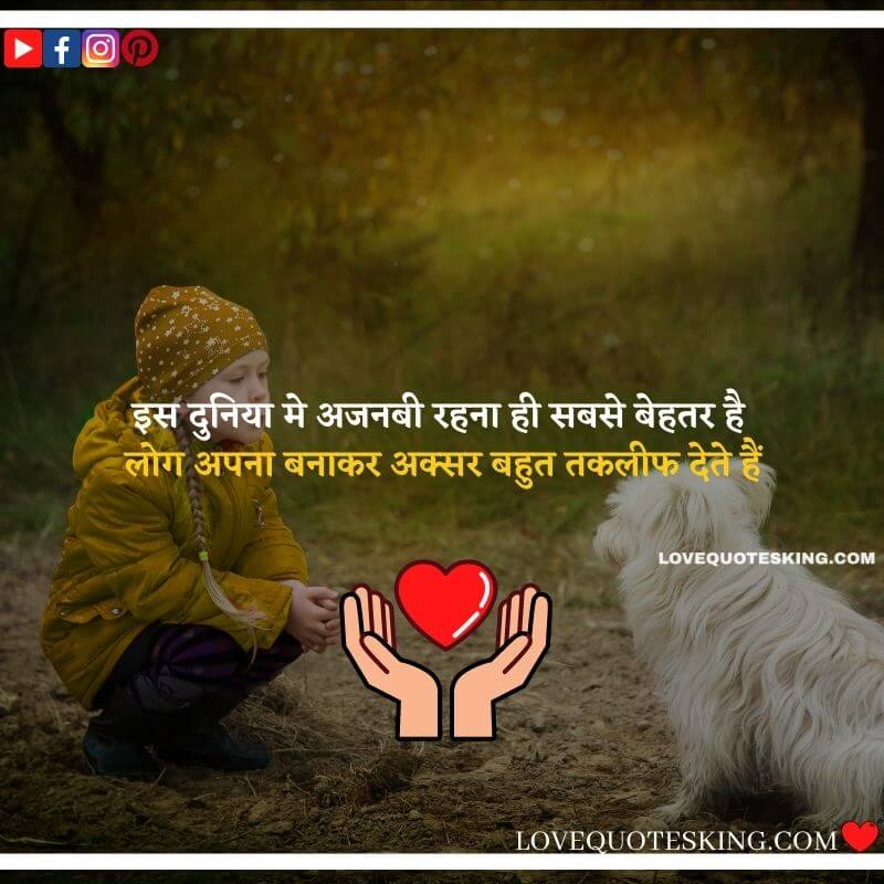 इस दुनिया मे अजनबी रहना ही सबसे बेहतर है लोग अपना बनाकर अक्सर बहुत तकलीफ देते हैं