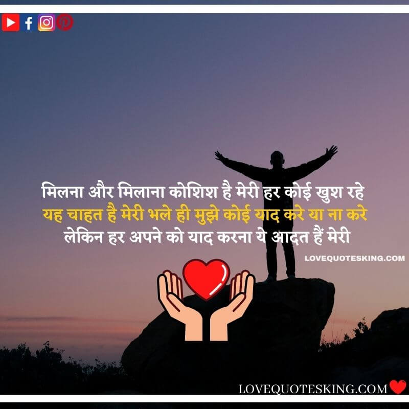 मिलना और मिलाना कोशिश है मेरी हर कोई खुश रहे यह चाहत है मेरी भले ही मुझे कोई याद करे या ना करे लेकिन हर अपने को याद करना ये आदत हैं मेरी