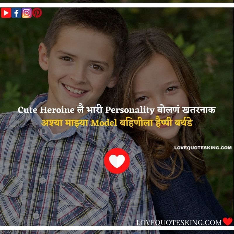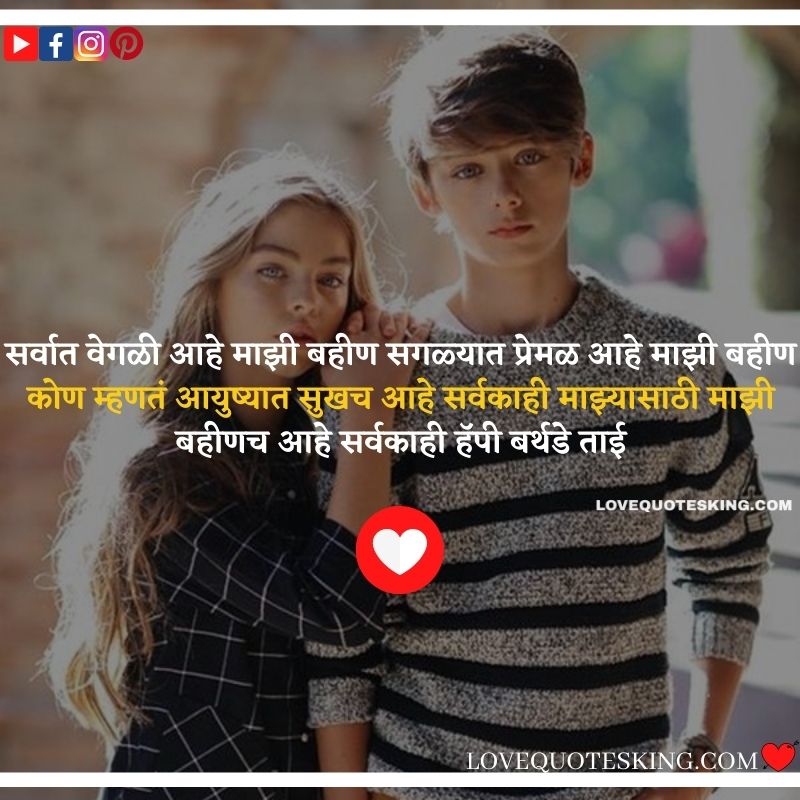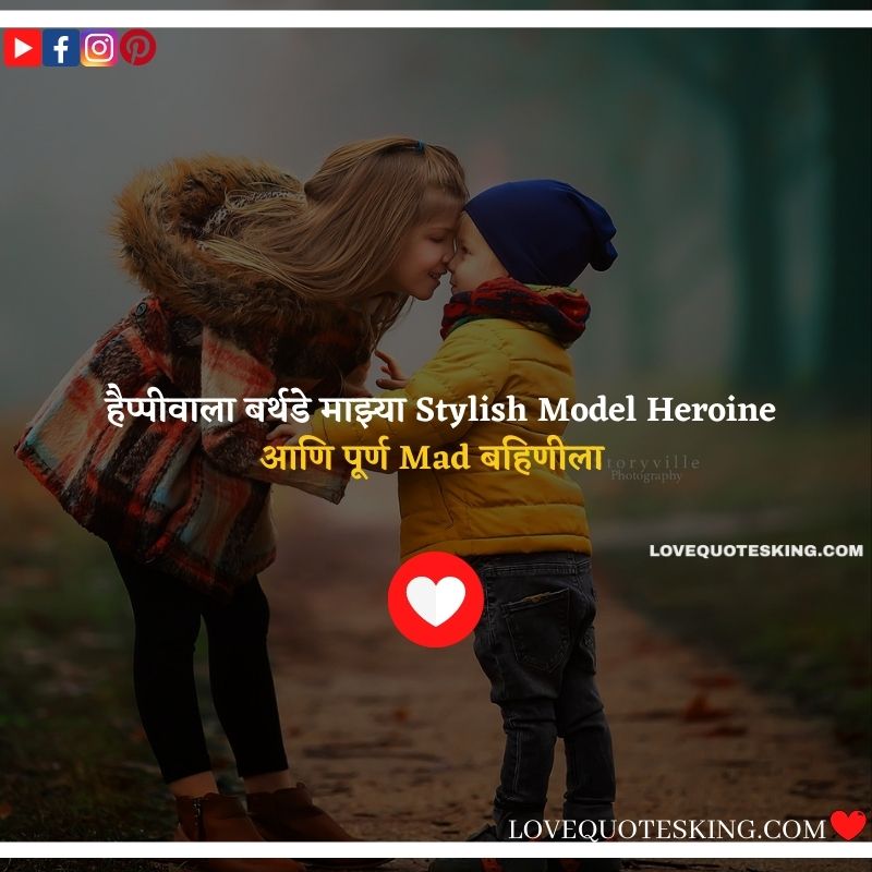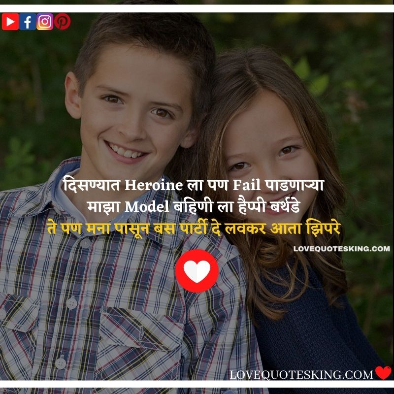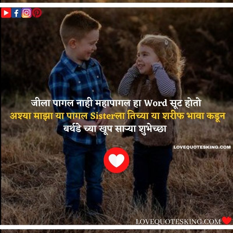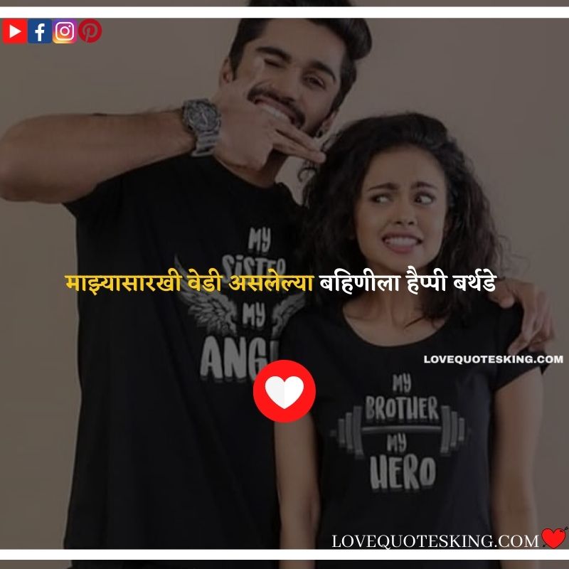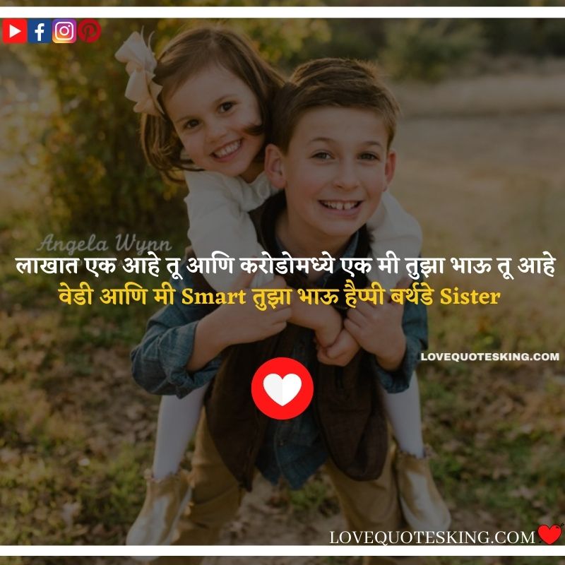 लाखात एक आहे तू आणि करोडोमध्ये एक मी तुझा भाऊ तू आहे वेडी आणि मी Smart तुझा भाऊ हैप्पी बर्थडे Sister