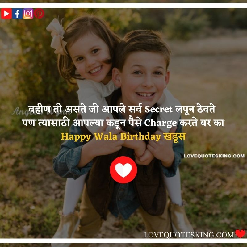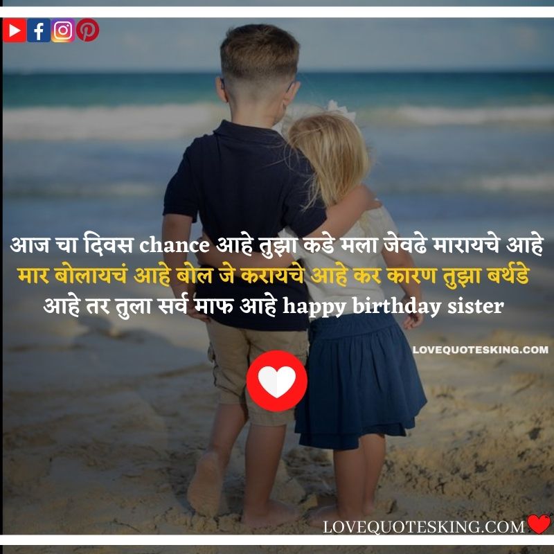 आज चा दिवस chance आहे तुझा कडे मला जेवढे मारायचे आहे मार, बोलायचं आहे बोल जे करायचे आहे कर कारण तुझा बर्थडे आहे तर तुला सर्व माफ आहे happy birthday sister