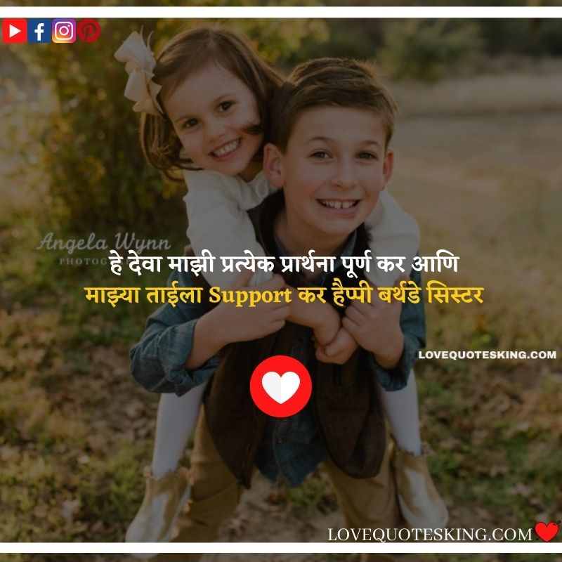 हे देवा माझी प्रत्येक प्रार्थना पूर्ण कर आणि माझ्या ताईला Support कर हैप्पी बर्थडे सिस्टर