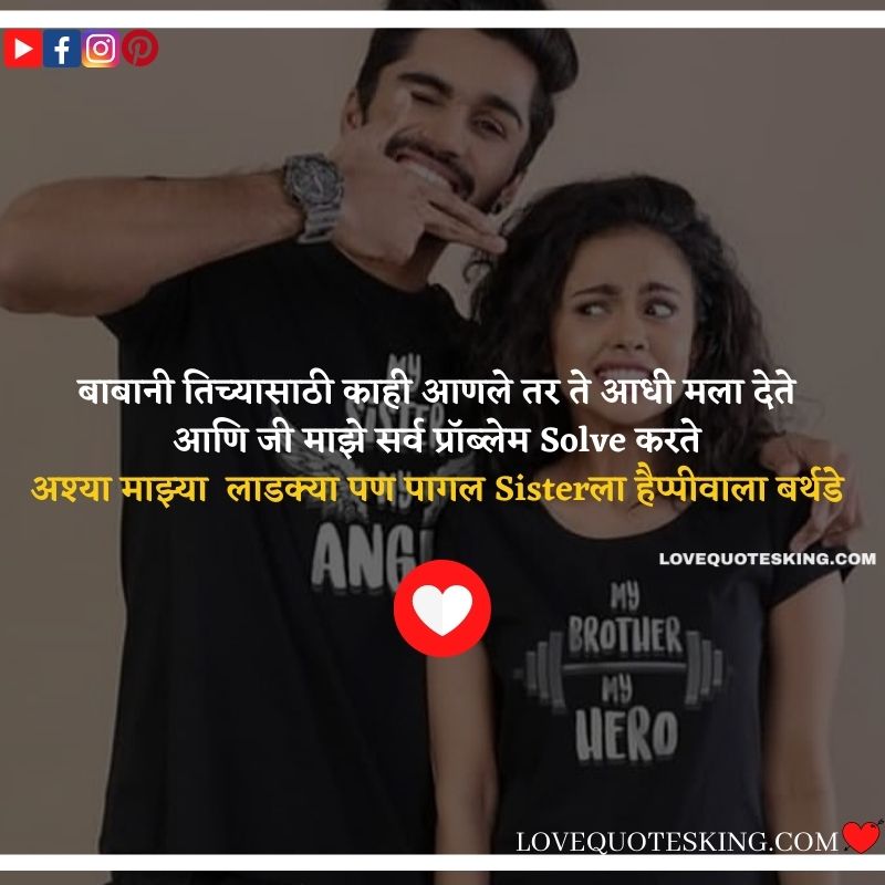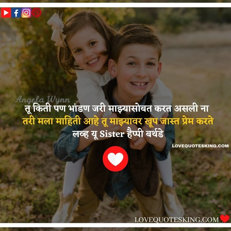 तू किती पण भांडण जरी माझ्यासोबत करत असली ना तरी मला माहिती आहे तू माझ्यावर खूप जास्त प्रेम करते लव्ह यू Sister हैप्पी बर्थडे