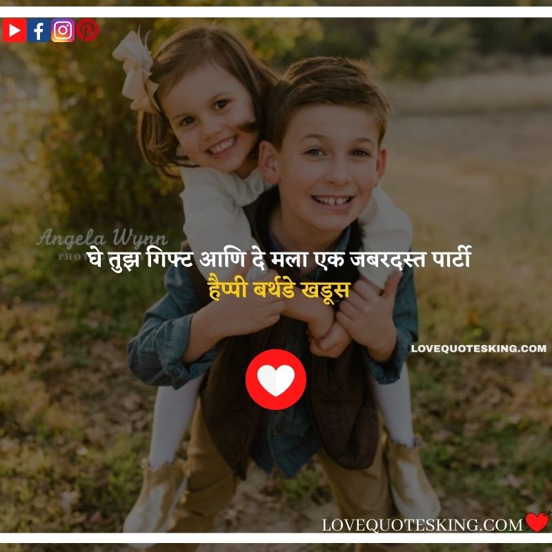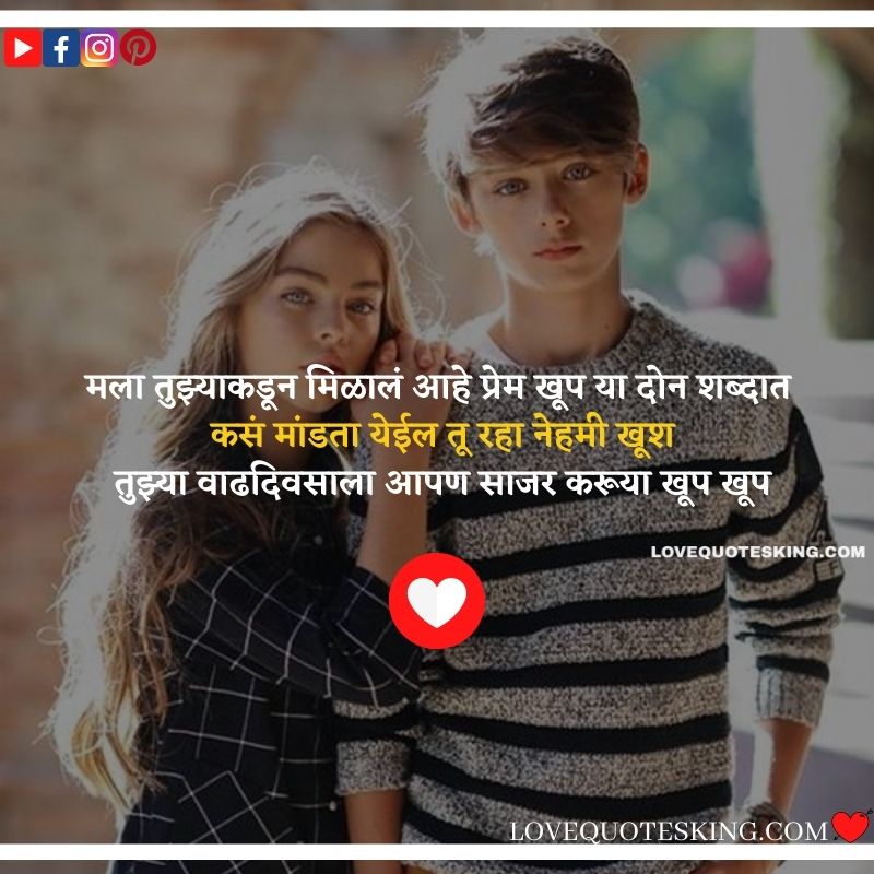 मला तुझ्याकडून मिळालं आहे प्रेम अपरंपार या दोन शब्दात कसं मांडता येईल तू रहा नेहमी खूश तुझ्या वाढदिवसाला आपण साजर करूया खूप खूप