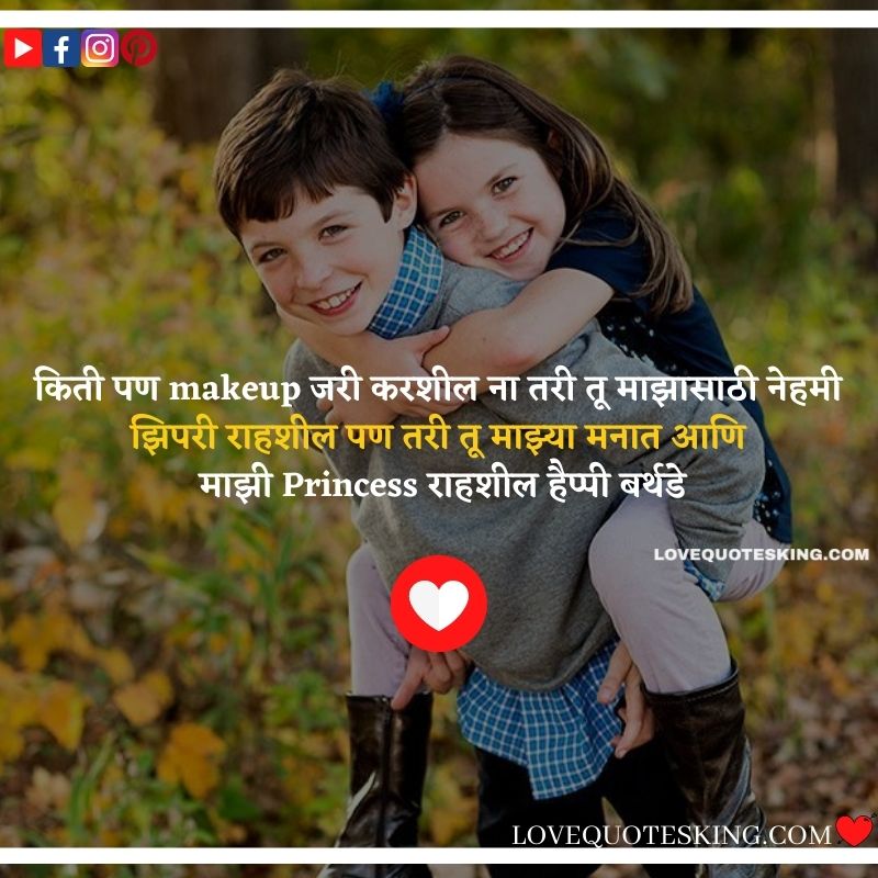 किती पण makeup जरी करशील ना तरी तू माझासाठी नेहमी झिपरी राहशील पण तरी तू माझ्या मनात आणि माझी Princess राहशील हैप्पी बर्थडे Siso