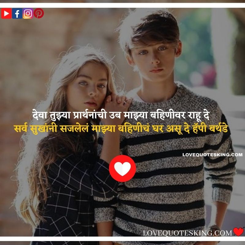 देवा तुझ्या प्रार्थनांची उब माझ्या बहिणीवर राहू दे सर्व सुखांनी सजलेलं माझ्या बहिणीचं घर असू दे हॅपी बर्थडे