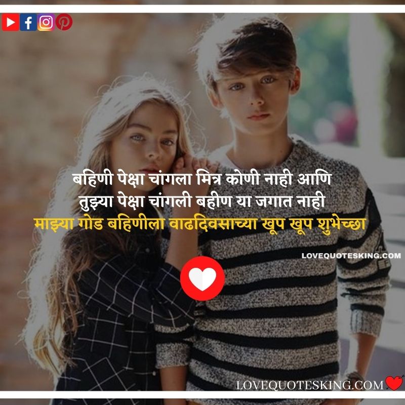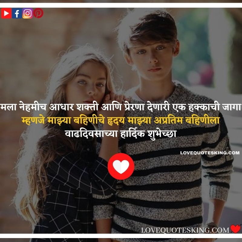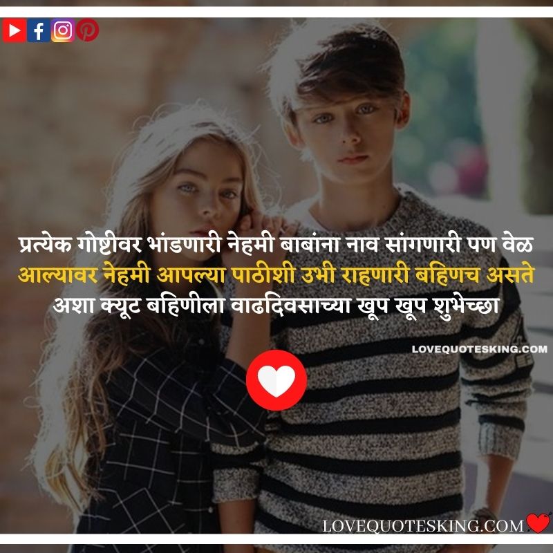 मित्र आपल्याला हसवतील आपल्यावर प्रेम करतील परंतु बहीण ही अशी व्यक्ती आहे जी नेहमीच आपल्या पाठीशी राहून आपले अश्रू पुसते वाढदिवसाच्या हार्दिक शुभेच्छा