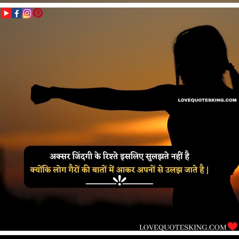 अक्सर जिंदगी के रिश्ते इसलिए सुलझते नहीं है,क्योंकि लोग गैरों की बातों में आकर अपनों से उलझ जाते है |