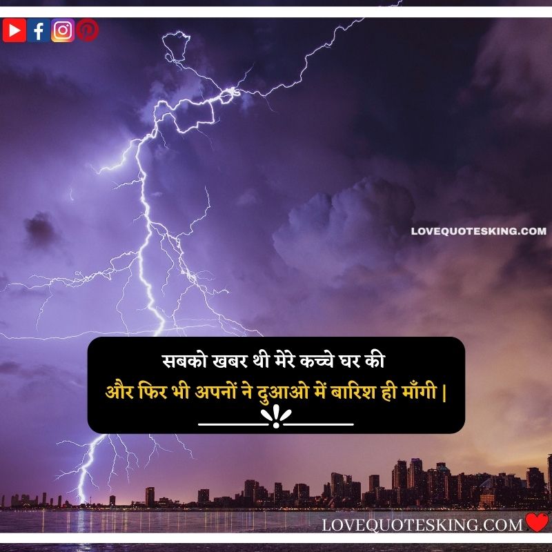 सबको खबर थी मेरे कच्चे घर की और फिर भी अपनों ने दुआओ में बारिश ही माँगी |