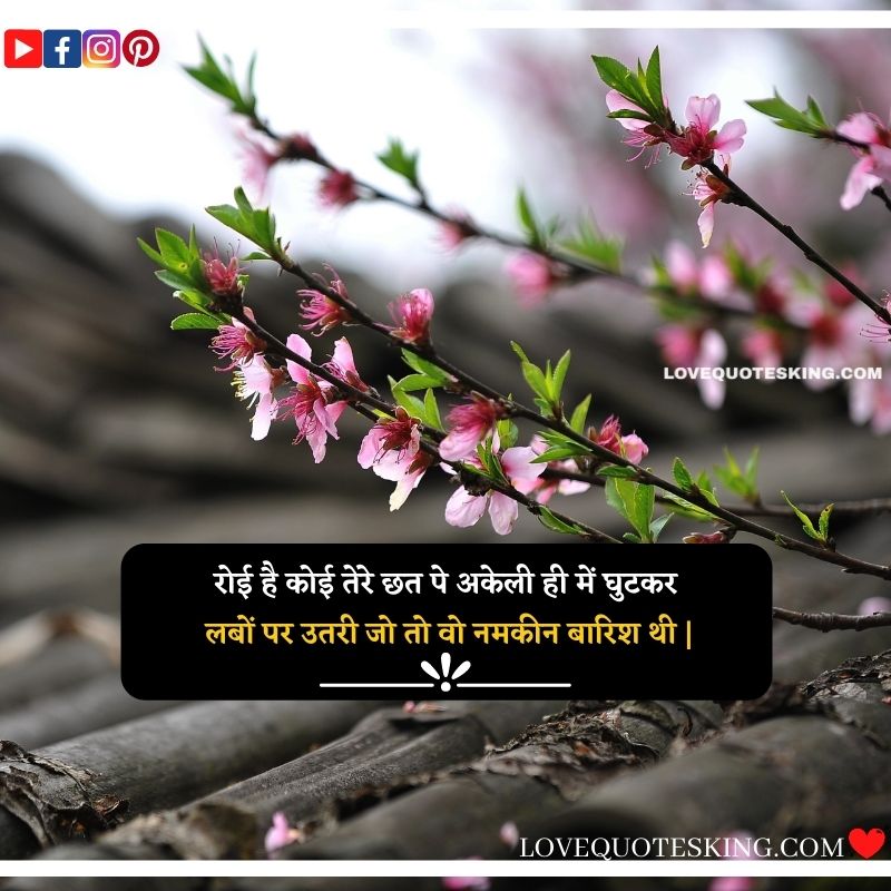 रोई है कोई तेरे छत पे, अकेली ही में घुटकर, लबों पर उतरी जो तो वो नमकीन बारिश थी |