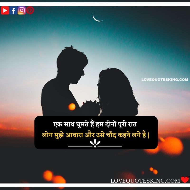 एक साथ घुमते हैं हम दोनों पूरी रात , लोग मुझे आवारा और उसे चाँद कहने लगे है |