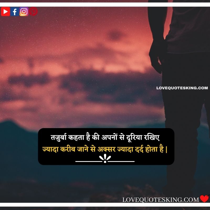 तजुर्बा कहता है की अपनों से दूरिया रखिए,ज्यादा करीब जाने से अक्सर ज्यादा दर्द होता है |