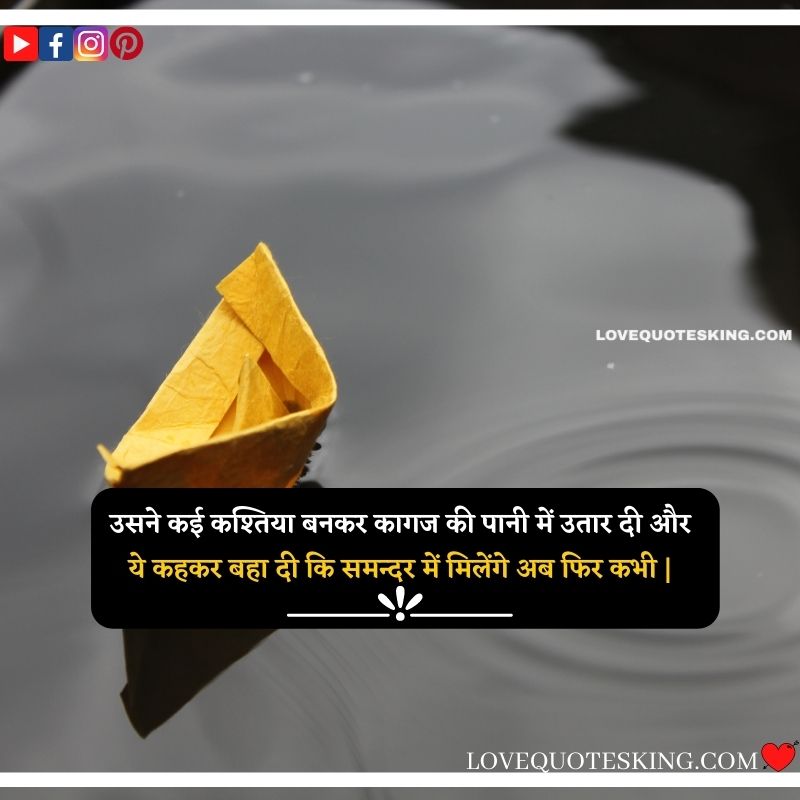 उसने कई कश्तिया बनकर कागज की पानी में उतार दी और,ये कहकर बहा दी कि समन्दर में मिलेंगे अब फिर कभी