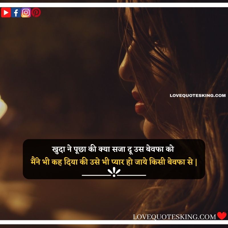 खुदा ने पूछा की क्या सजा दू उस बेवफा को ,मैंने भी कह दिया की उसे भी प्यार हो जाये किसी बेवफा से |