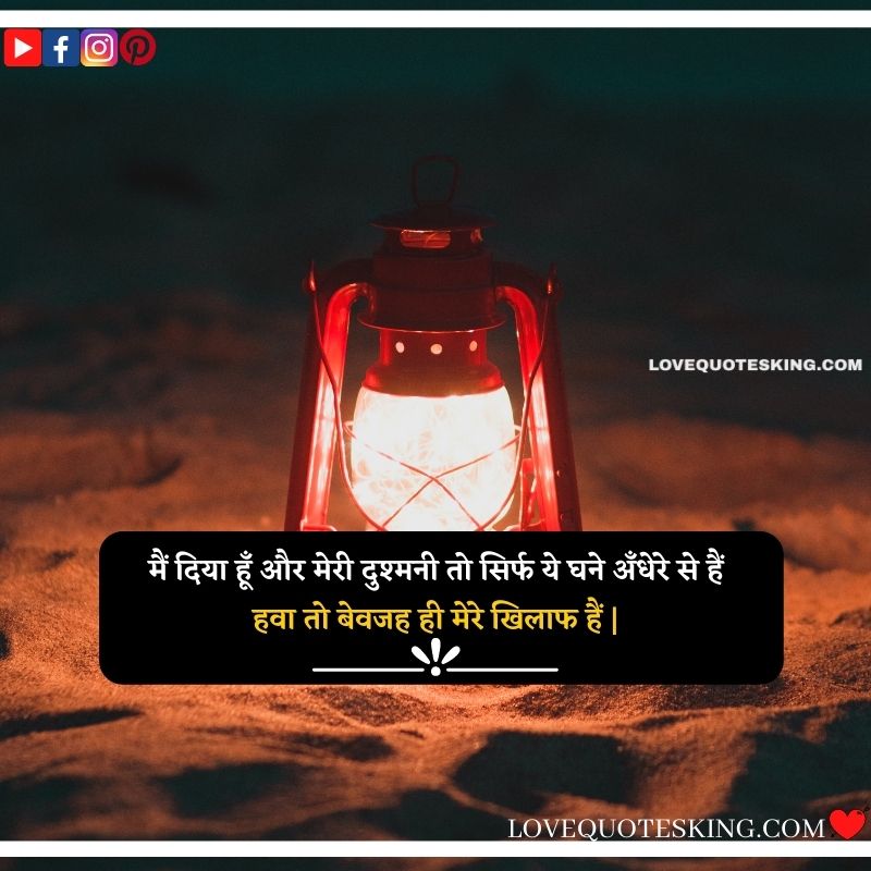 मैं दिया हूँ और मेरी दुश्मनी तो सिर्फ ये घने अँधेरे से हैं,हवा तो बेवजह ही मेरे खिलाफ हैं |