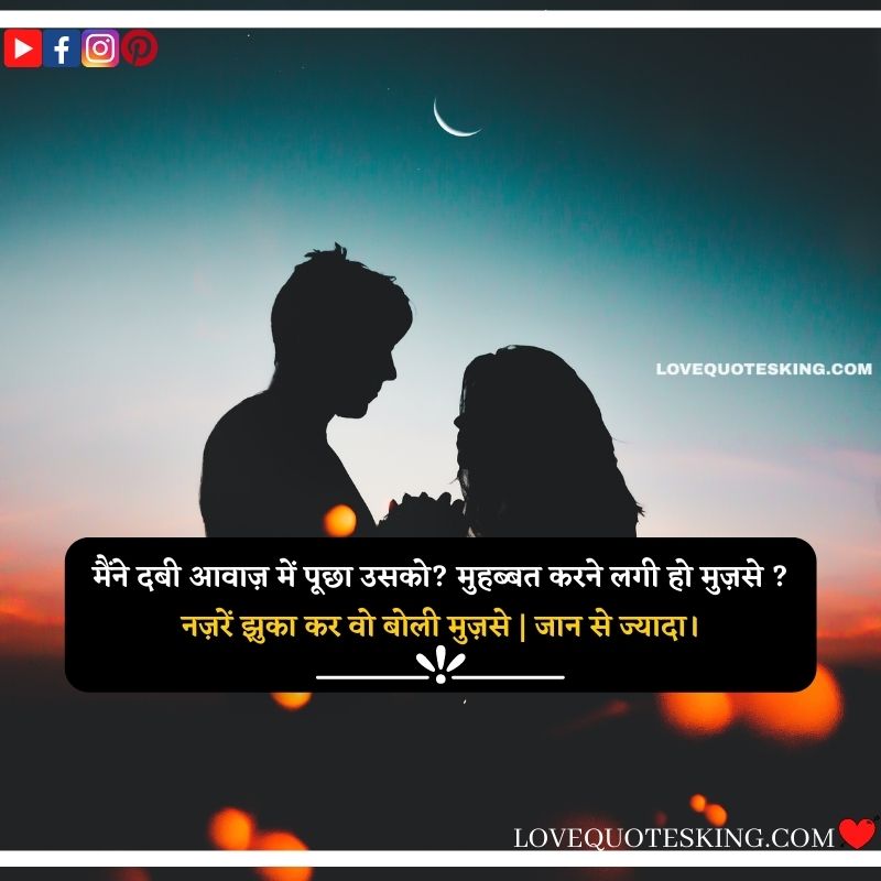 मैंने दबी आवाज़ में पूछा उसको? मुहब्बत करने लगी हो मुज़से ? नज़रें झुका कर वो बोली मुज़से | जान से ज्यादा।