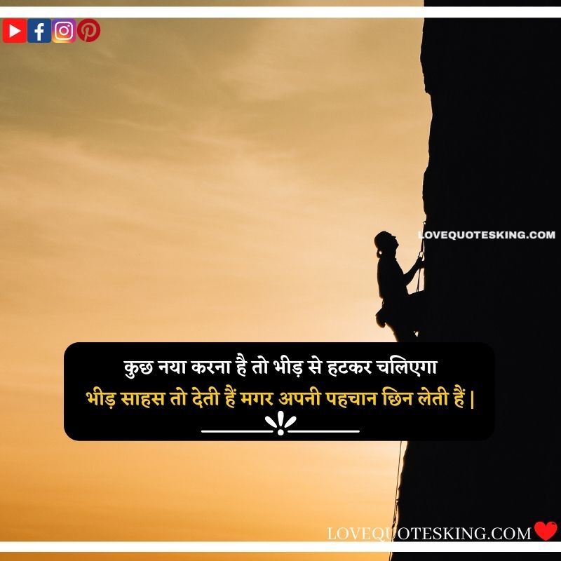 कुछ नया करना है तो भीड़ से हटकर चलिएगा, भीड़ साहस तो देती हैं मगर अपनी पहचान छिन लेती हैं |