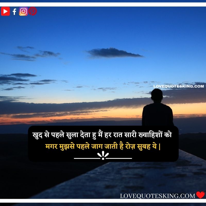 खुद से पहले सुला देता हु मैं हर रात सारी ख्वाहिशों को , मगर मुझसे पहले जाग जाती है रोज़ सुबह ये |