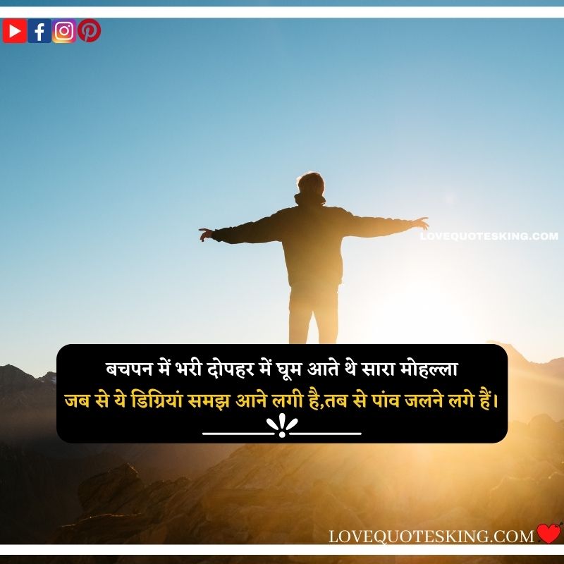 बचपन में भरी दोपहर में घूम आते थे सारा मोहल्ला, जब से ये डिग्रियां समझ आने लगी है,तब से पांव जलने लगे हैं।