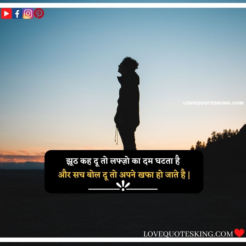 झूठ कह दू तो लफ्ज़ो का दम घटता है, और सच बोल दू तो अपने खफा हो जाते है |