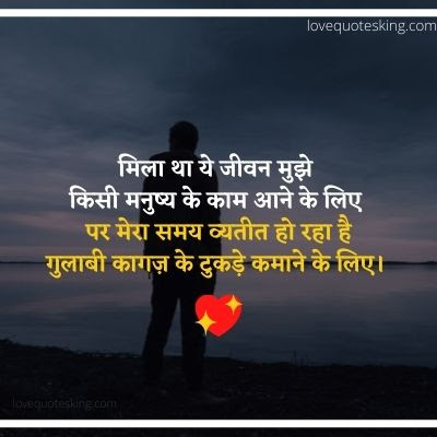 मिला था ये जीवन मुझे किसी मनुष्य के काम आने के लिए पर मेरा समय व्यतीत हो रहा है, गुलाबी कागज़ के टुकड़े कमाने के लिए।