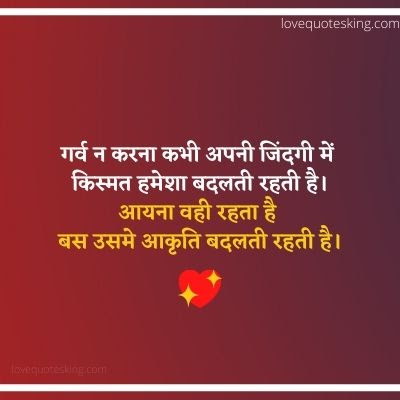 गर्व न करना कभी अपनी जिंदगी में , किस्मत हमेशा बदलती रहती है।