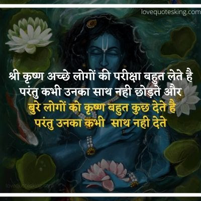 श्री कृष्ण अच्छे लोगों की परीक्षा बहुत लेते है,परंतु कभी उनका साथ नही छोड़ते और बुरे लोगों को कृष्ण बहुत कुछ देते है,परंतु उनका कभी साथ नही देते ।