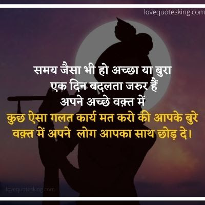 समय जैसा भी हो अच्छा या बुरा एक दिन बदलता जरुर हैं , अपने अच्छे वक़्त में कुछ ऐसा गलत कार्य मत करो की आपके बुरे वक़्त में अपने लोग आपका साथ छोड़ दे।