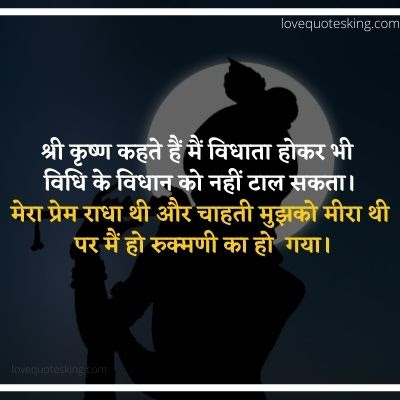 श्री कृष्ण कहते हैं , मैं विधाता होकर भी विधि के विधान को नहीं टाल सकता। मेरा प्रेम राधा थी और चाहती मुझको मीरा थी पर मैं हो रुक्मणी का हो गया।